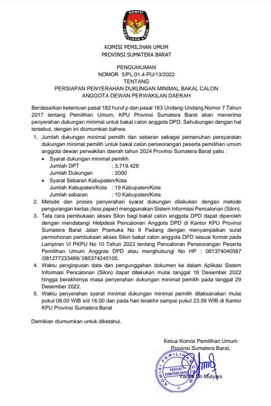 “Juga untuk mendorong pemilu sebagai instrumen penentuan dan evaluasi kepemimpinan politik, serta munculnya kepemimpinan politik yang sesuai dengan aspirasi terbesar rakyat,” tukasnya.