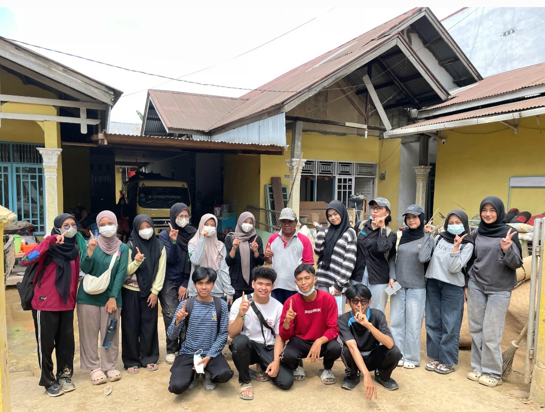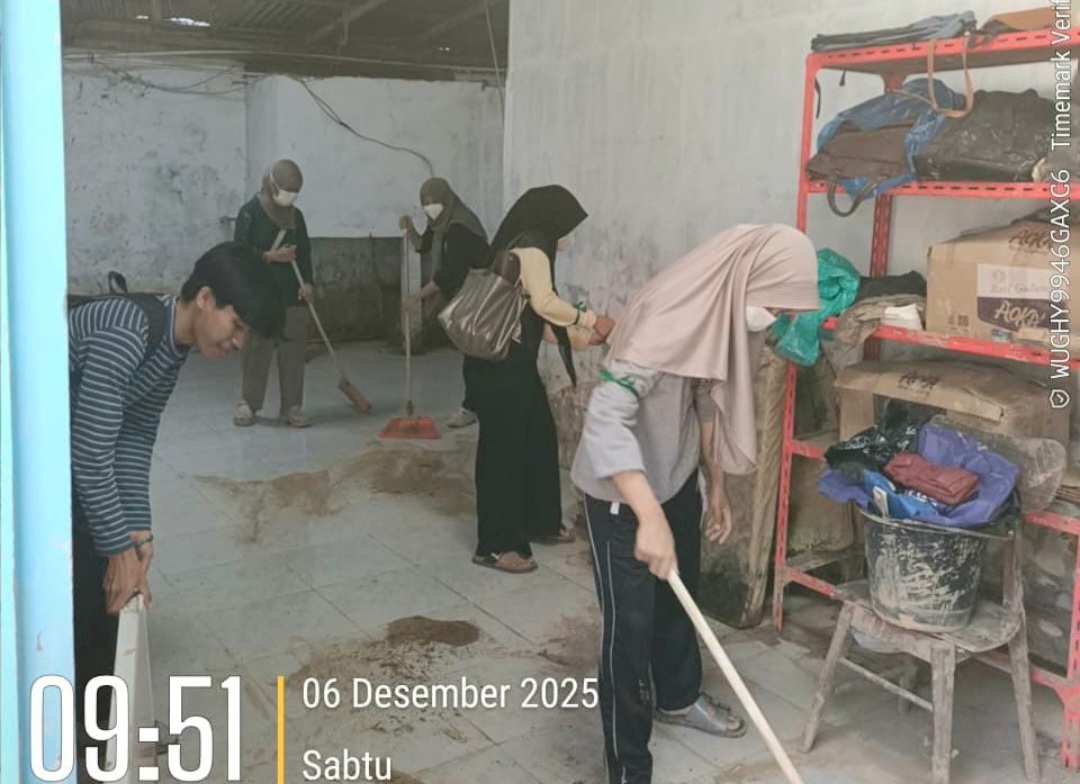Dalam pelaksanaannya, mahasiswa awalnya membantu mengeluarkan barang-barang dari pemilik rumah agar nantinya lebih mudah untuk membersihkan sisa-sisa lumpur yang masih basah bahkan sudah kering di dinding dan lantai rumah.