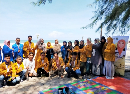 KONSTITUEN –Anggota DPR RI Hj Nevi Zuairina berfoto bersama dengan konstituennya, masyarakat Kabupaten Pasaman Barat, di Pantai Sikabu. (Foto : NZCenter)