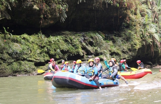Rafting Outbound ini juga diikuti Kepala Dinas Parpora Kabupaten Sijunjung Afrineldi serta Wali Nagari Muaro Hafizun.