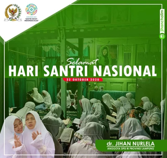 LAMPUNG, forumsumbar — Anggota DPD RI dari daerah pemilihan Provinsi Lampung dr Jihan Nurlela memberikan catatan khusus pada peringatan Hari Santri, 22 Oktober 2020 ini.