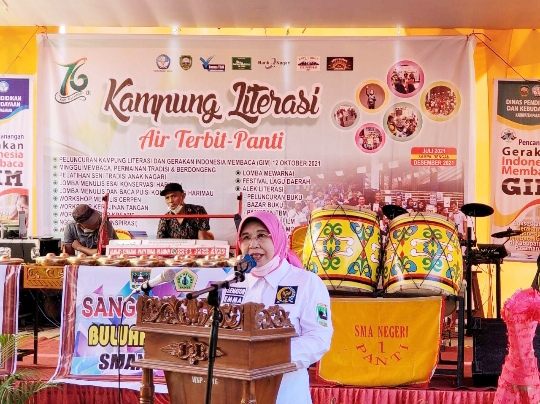 PASAMAN, forumsumbar —Anggota DPD RI Hj Emma Yohanna menghadiri Pencanangan Kampung Literasi Air Terbit yang berlokasi di Nagari Panti, Kabupaten Pasaman, Selasa (12/10).