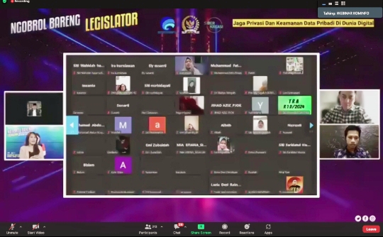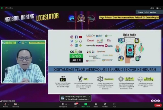 WEBINAR –Suasana webinar Ngobrol Bareng Legislator dengan tema “Jaga Privasi dan Keamanan Data Pribadi di Dunia Digital”. (Foto : Darmawan)