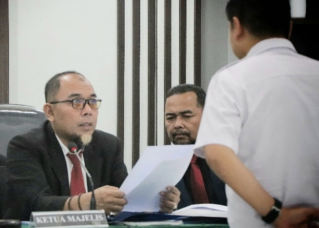 Pembacaan putusan terkiat sengketa informasi antara Yufriadi dengan Polsek Sungai Pagu. (Foto : grp)
