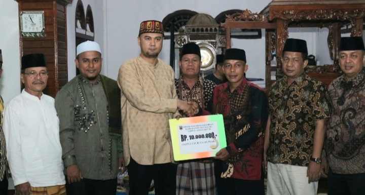Kedatangan TSR tersebut juga memberikan bantuan hibah Pemkab Sijunjung untuk pembangunan masjid sebesar Rp10 juta, berikut bantuan dari Bank Nagari sebesar Rp2,5 juta.