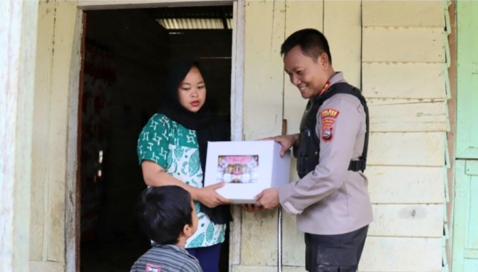 Jajaran Polres Pasaman Barat sedang membagikan paket. (Foto : gmz)