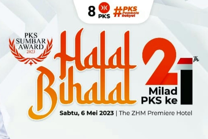 PADANG, forumsumbar—Dalam rangka Milad ke-21 Partai Keadilan Sejahtera (PKS), rencananya Dewan Pengurus Wilayah (DPW) PKS Sumbar akan menggelar acara Halal Bi Halal dan Temu Tokoh pada Sabtu, 6 Mei 2023, di Ball Room ZHM Premiere Hotel Padang.