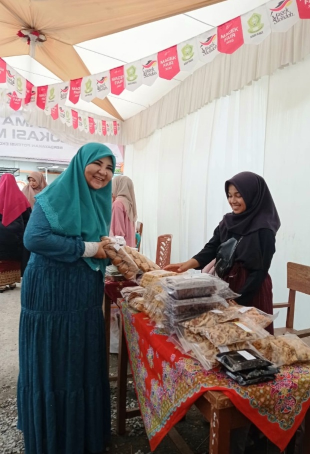 Anggota DPR RI Hj Nevi Zuairina selalu menyempatkan diri berbincang dengan pelaku UMKM. (Foto : nzcenter)
