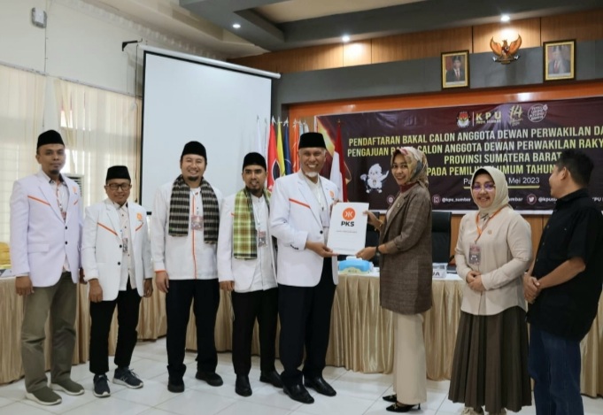DCS PKS Sumbar didaftarkan ke KPU, hari ini. PKS mengambil momen tanggal 8 Mei 2023, karena angka 8 sama dengan nomor PKS sebagai peserta Pemilu 2024.