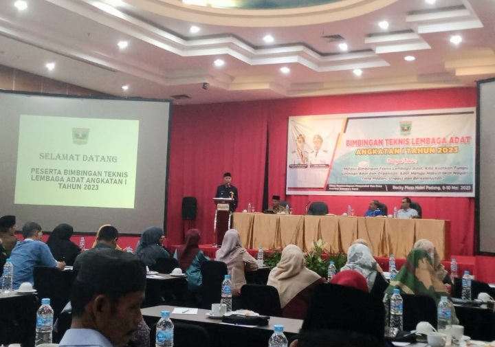 PADANG, forumsumbar —Gubernur Sumbar Mahyeldi membuka secara resmi bimbingan teknis (Bimtek) Lembaga Adat angkatan pertama bertempat di Roky Hotel Padang, Senin (8/5/2023)