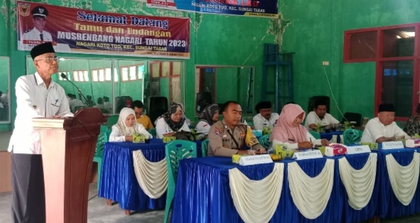 TANAH DATAR, forumsumbar — Nagari Koto Tuo Kecamatan Sungai Tarab Kabupaten Tanah Datar melaksanakan Musrenbang di gedung serbaguna nagari setempat, Rabu (4/10/2023).