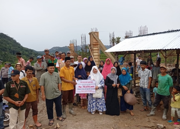 Anggota DPR RI Hj Nevi Zuairina serahkan bantuan TJSL untuk pembangunan Masjid An-Nur Nagari Pagadiah Kabupaten Agam. (Foto : nzcenter)