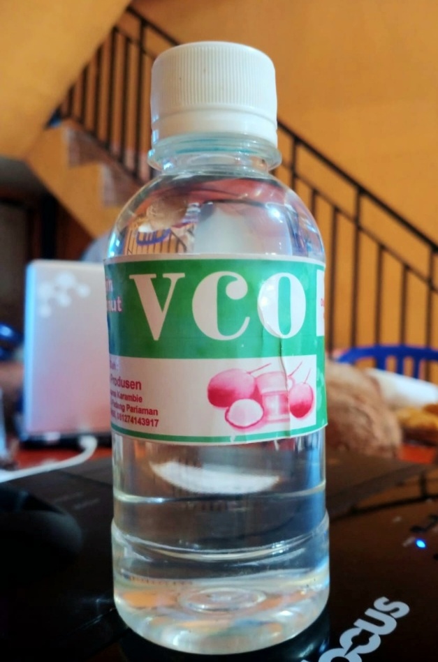Pelatihan ini mulai dari pemilihan kelapa, sampai bagaimana menyaring hasil VCO. Dan terakhir mengenai kemasan.