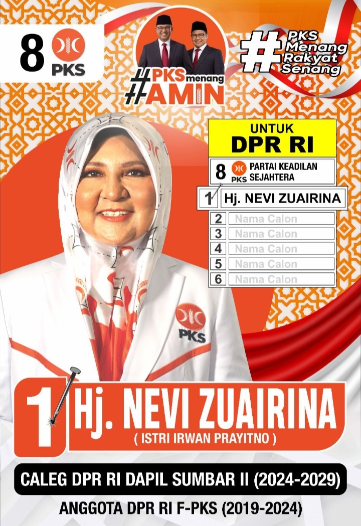 Adapun pada Pemilu 2024 ini, Nevi Zuairina kembali maju jadi Caleg DPR RI Dapil Sumbar II dari PKS dengan nomor urut 1.