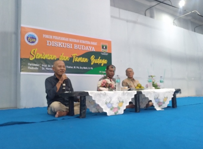 Pada Diskusi Budaya yang menjadi kegiatan rutin FPS Sumatera Barat tiap bulannya ini turut menjadi narasumber Prof Dr Harris Effendi Thahar, MPd (Guru Besar UNP/Budayawan/Seniman), dan dimoderatori Dr Hermawan, MHum.