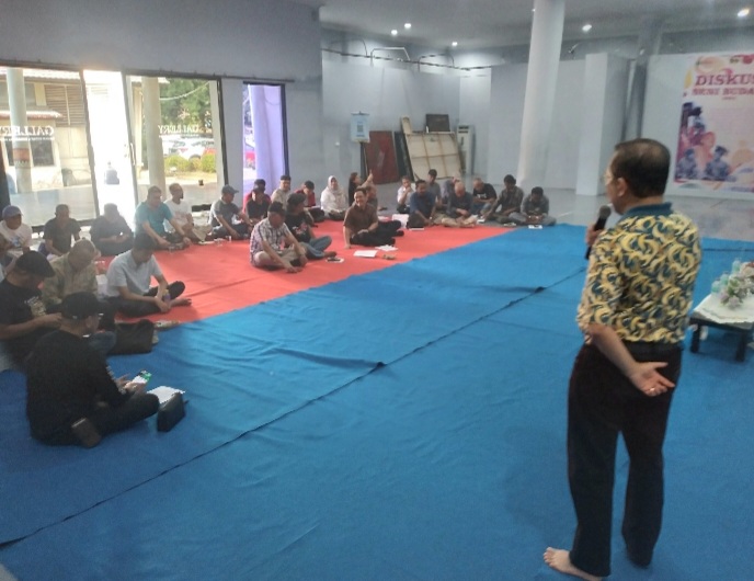 Hadir pula puluhan seniman, wartawan dan mahasiswa, yang antusias mengikuti diskusi tersebut.