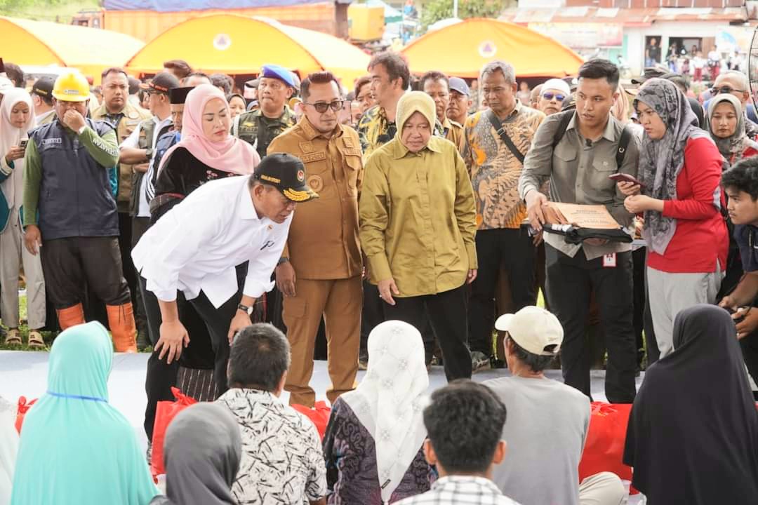 Bantuan diserahkan Menteri Koordinator Bidang Pembangunan Manusia dan Kebudayaan (Menko PMK) Muhadjir Effendy yang turut disaksikan Menteri Sosial (Mensos) Tri Rismaharini, Kepala BNPB Letjen TNI Suharyanto, Bupati Tanah Datar Eka Putra, Forkopimda Tanah Datar, Ketua TP PKK, dan lainnya, Selasa (21/5/2024), di lapangan bola kaki Lima Kaum Kecamatan Lima Kaum.