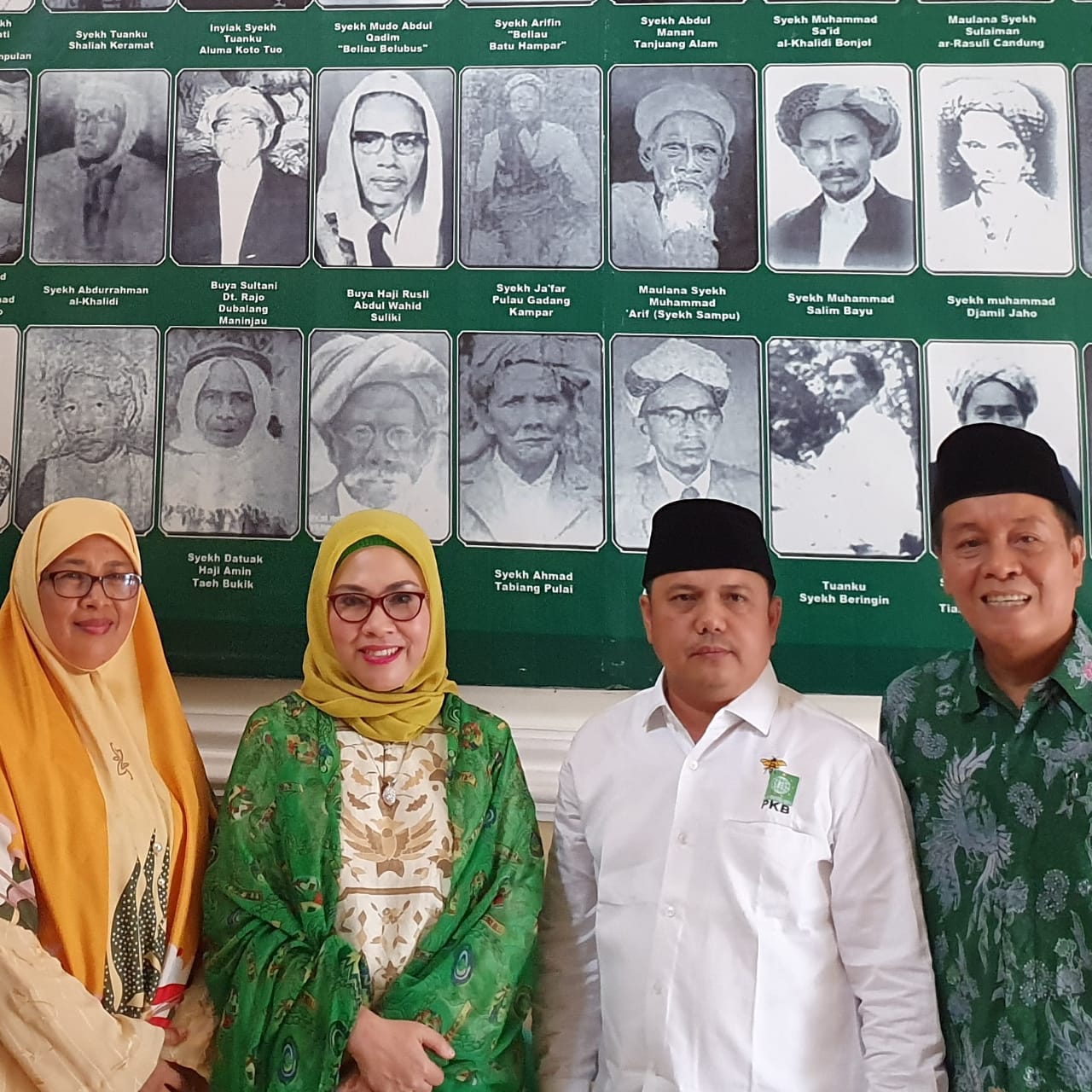 ANTUSIAS –Bacagub Edriana disambut antusias oleh Ketua PKB Sumbar Febby Dt Bangso dan jajaran di Rumah Kebangsaan. (Foto : Dok)