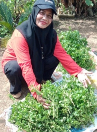 Anggota Poktan “Mekar Tani” panen bayam brazil. (Foto : Tia)