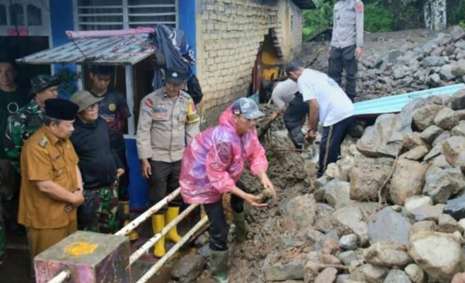 Bencana yang disebabkan oleh curah hujan tinggi tersebut mengakibatkan empat rumah warga rusak akibat dimasuki material longsor.