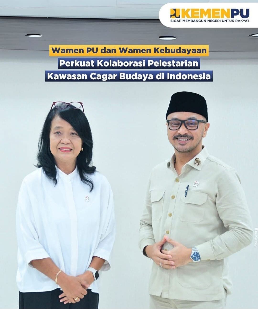 Pertemuan ini untuk memperkuat kolaborasi dalam rangka pelestarian kebudayaan melalui program-program penataan kawasan cagar budaya yang telah dilaksanakan Kementerian PU.