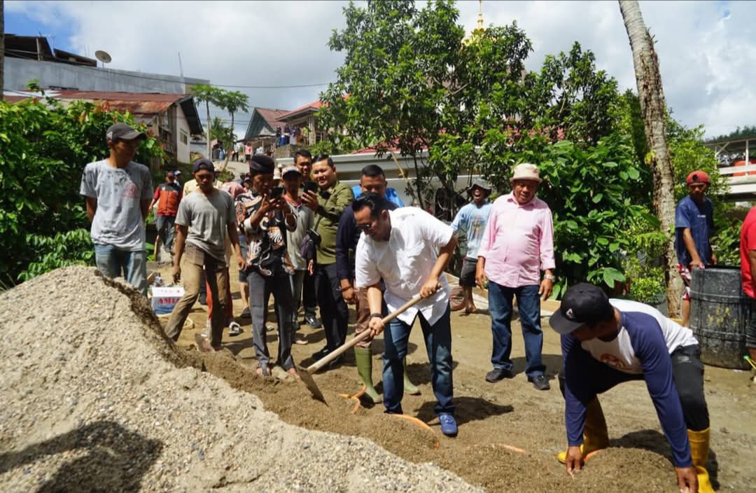 TANAH DATAR, AmanMakmur —Bupati Tanah Datar Eka Putra, SE, MM sangat menghargai usaha masyarakat jorong Galogandang Nagari III Koto, Kecamatan Rambatan yang secara swadaya melakukan gotong royong bersama untuk pengecoran jalan Lambah Aia Tumbuak Surau Wakaf.