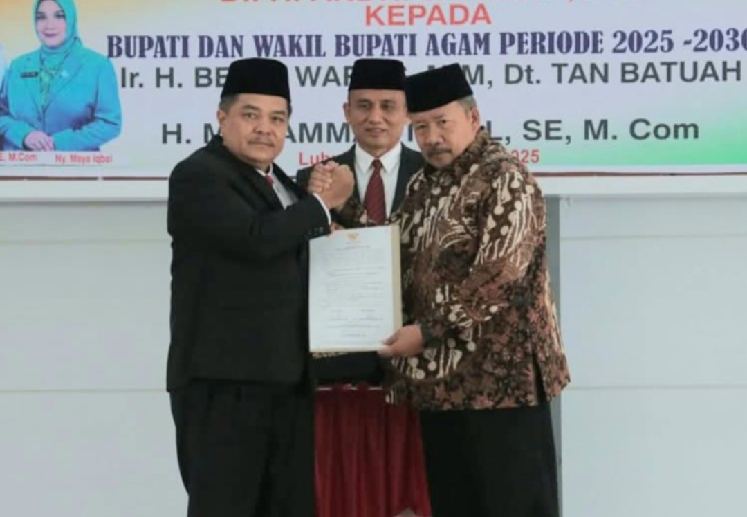 AGAM, forumsumbar —Kabupaten Agam memasuki babak baru dalam perjalanan pembangunannya dengan dilantiknya Benni Warlis dan Muhammad Iqbal sebagai Bupati dan Wakil Bupati Agam periode 2025-2030.