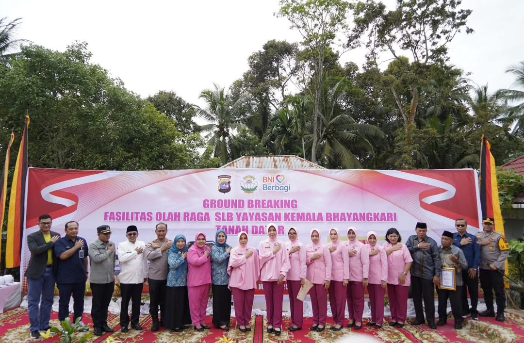 TANAH DATAR, forumsumbar —Bupati Tanah Datar Eka Putra, Ketua DPRD Anton Yondra, Ketua TP PKK Ny Lise Eka Putra beserta Wakil Ketua TP PKK Ny Dwinanda Ahmad Fadly menghadiri peletakan batu pertama pembangunan Gedung Olahraga (GOR) oleh Pengurus Pusat Yayasan Kemala Bhayangkari di SLB Yayasan Kemala Bhayangkari (YKB), di Nagari Lubuak Jantan, Jumat (7/3/2025).