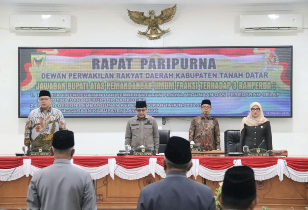 TANAH DATAR, forumsumbar — Dewan Perwakilan Rakyat Daerah (DPRD) Kabupaten Tanah Datar menggelar rapat Paripurna tentang Jawaban Bupati atas Pemandangan Umum Fraksi DPRD terhadap 3 Rancangan Peraturan Daerah (Ranperda), Kamis (15/10/2025), di ruang sidang utama gedung DPRD setempat.