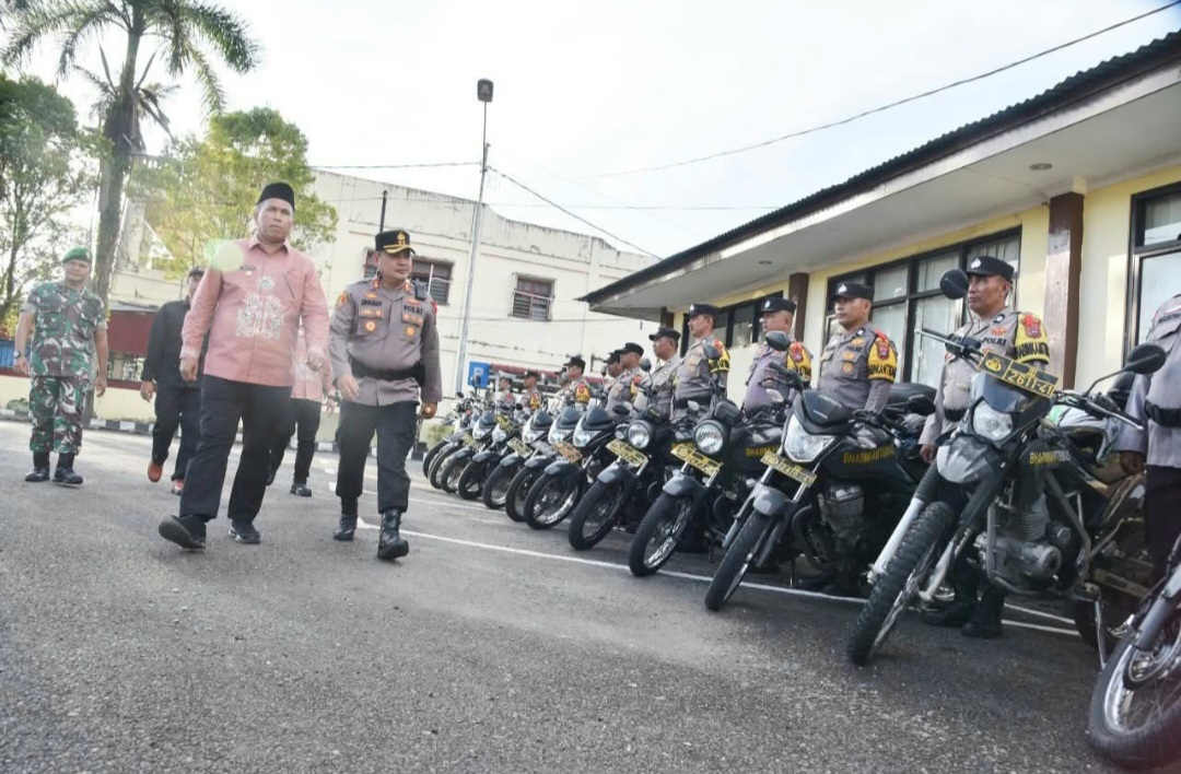 Wakil Walikota Pariaman Mulyadi pimpin Apel Gelar Pasukan Operasi Lilin Singgalang 2025 di Polres Pariaman. (Foto : Kominfo)