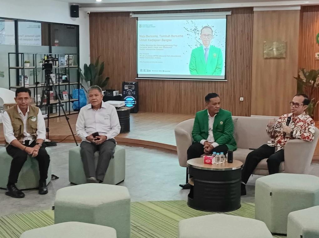 PADANG, forumsumbar — Rektor Unand Efa Yonnedi menggelar acara Coffe Morning dan Bincang-bincang Pagi Bersama Media Cetak dan Elektronik, Senin (2/2/2026), bertempat di The Gade Creative Lounge (TGCL), Gedung Pustaka Lt2 Kampus Unand Limau Manis Padang.