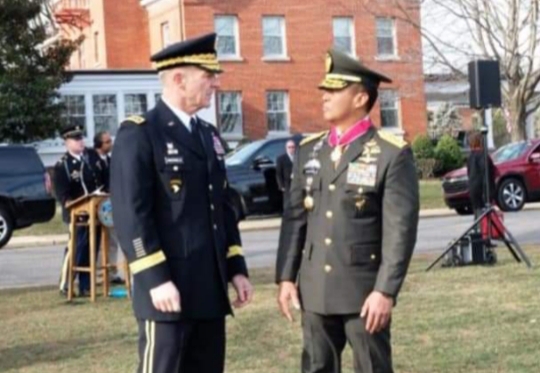 Medali Kehormatan tersebut disematkan secara langsung oleh Jenderal James C. McConville, KASAD AS, pada upacara resmi penyambutan di Whipple Field, Arlington, Amerika Serikat, Kamis (30/1).
