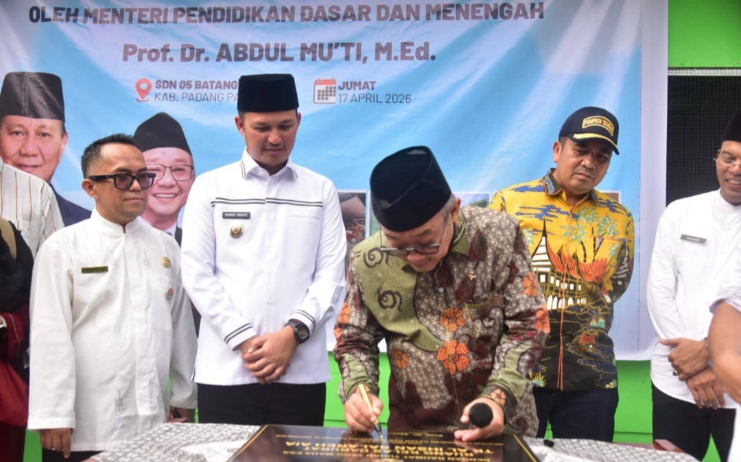 PADANG PARIAMAN, forumsumbar — Wakil Bupati Padang Pariaman Rahmat Hidayat menyambut hangat kunjungan Menteri Pendidikan Dasar dan Menengah (Dikdasmen) Abdul Mu’ti, di SDN 05 Batang Anai, Jumat (17/4/2026).