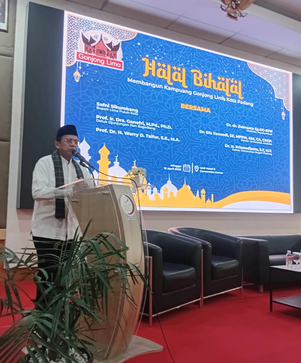Ketua Panitia Halal Bihalal Dr Deski Beri menyampaikan bahwa halal bihalal ini diadakan dalam rangka memperkuat silaturahmi di antara para perantau Gonjong Limo (Kabupaten Limapuluh Kota dan Kota Payakumbuh), yang ada di Kota Padang.