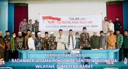 PENRNYATAAN SIKAP –Badan Kerjasama Pondok Pesantren Indonesia (BKsPPI) Wilayah Sumbar nyatakan sikap menolak dan batalkan RUU HIP. (Foto : Dok)