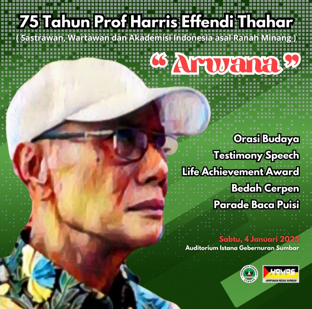 PADANG, forumsumbar—Rencananya Himpunan Media Sumbar (Hamas) akan menggelar acara “75 Tahun Prof Harris Effendi Thahar”, Sabtu 4 Januari 2025, bertempat di Auditorium Istana Gubernuran Sumbar, Jl Sudirman Padang.